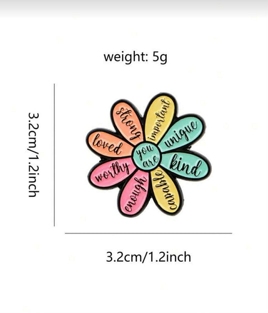 “You Are” Positive Affirmation Flower Enamel Badge